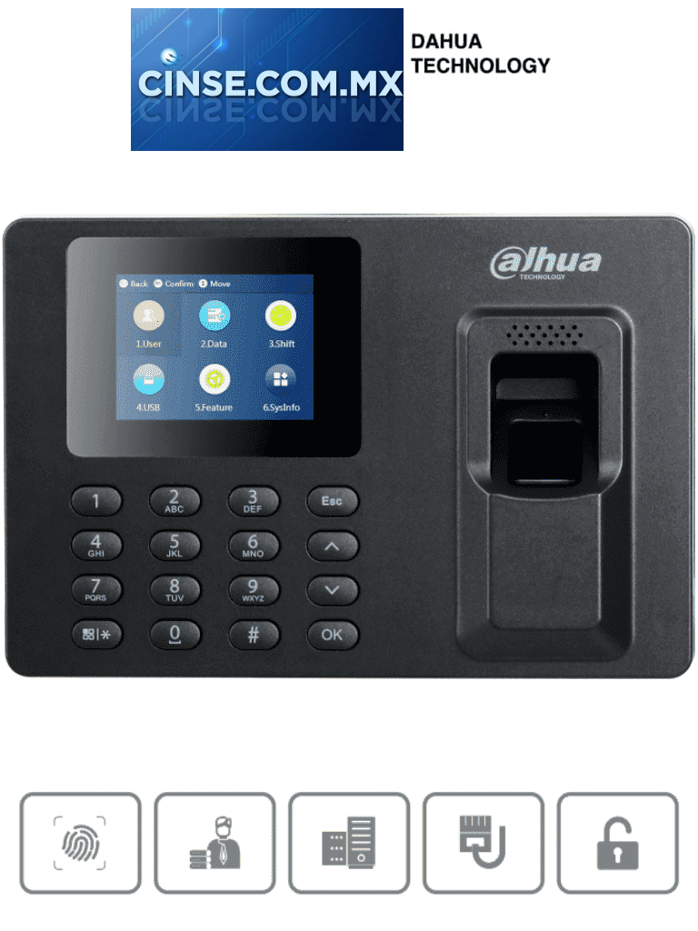 El DHI-ASA1222E-Sde Dahua es un terminal de tiempo y asistencia basado en comunicación TCP/IP con un relevador para uso de timbre electrónico externo, pantalla colorida TFT de 2,4 pulgadas, rápida Verificación, múltiples métodos de verificación (Huella y/o Contraseña), Genere informes de Smart Time Attendance de forma independiente, Entrada de texto T9, dos roles de usuario: administrador y usuario normal, visualización del registro de operaciones del administrador, los usuarios pueden consultar sus registros de asistencia, comunicación TCP-IP para su manejo o administración desde software Smart PSS.