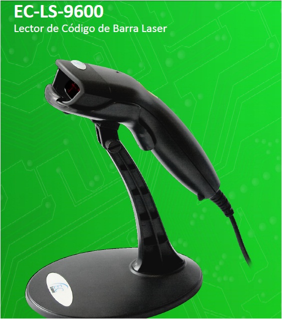 Lector de Código de Barras EC-LS-9600. Diseño Ergonómico con base, puede utilizarse en cualquier tipo de punto de venta, su gran velocidad para leer y decodificar códigos lo hace uno de los más atractivos en el mercado. Su diseño le permite trabajar a manos libres al estar colocado en su base.