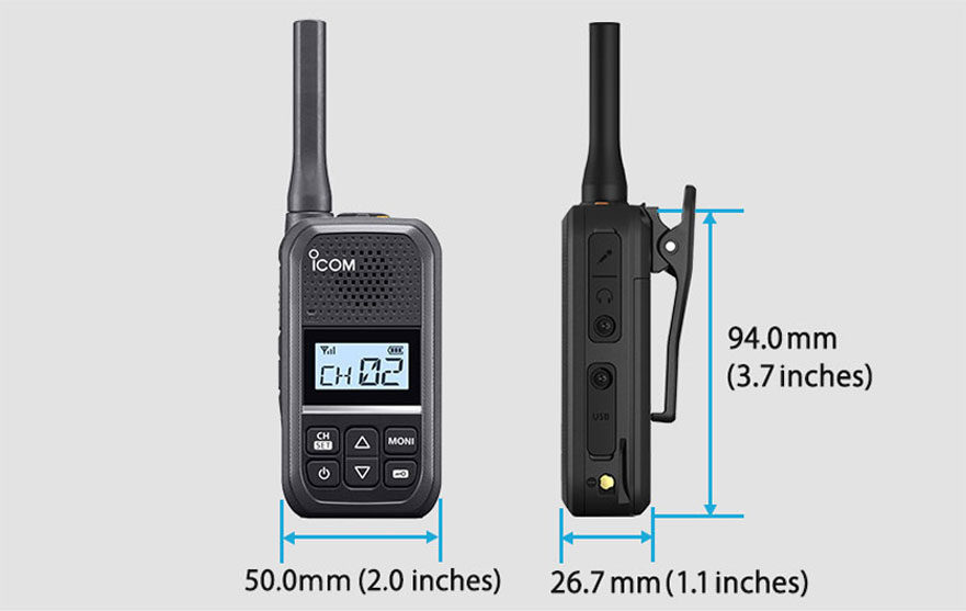 Cuerpo compacto con unas dimensiones de 37 x 21 x 11 pulgadas y un peso de sólo 55 oz, 2 W de potencia de salida, 16 canales y hasta 15 horas de funcionamiento. Aspecto robusto con IP54, resistencia a la intemperie MIL-STD810 y operaciones fáciles de usar. Versatilidad con diversas opciones de auriculares y funciones de manos libres VOX. El elegante e inteligente IC-F200 cabe en la palma de su mano y respalda firmemente su negocio.